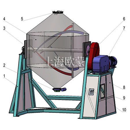 該機同V型混合機的功能相似。各項技術指標均能達到國內外同類產品標準。筒體均用不銹鋼材料制作,外形美觀,操作方便。
